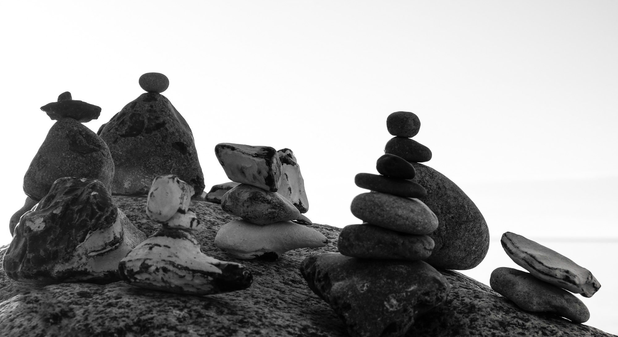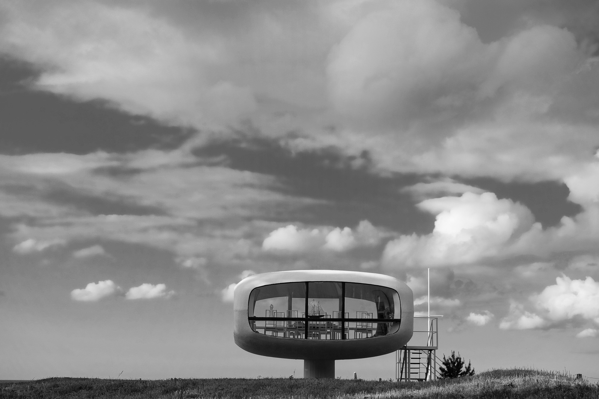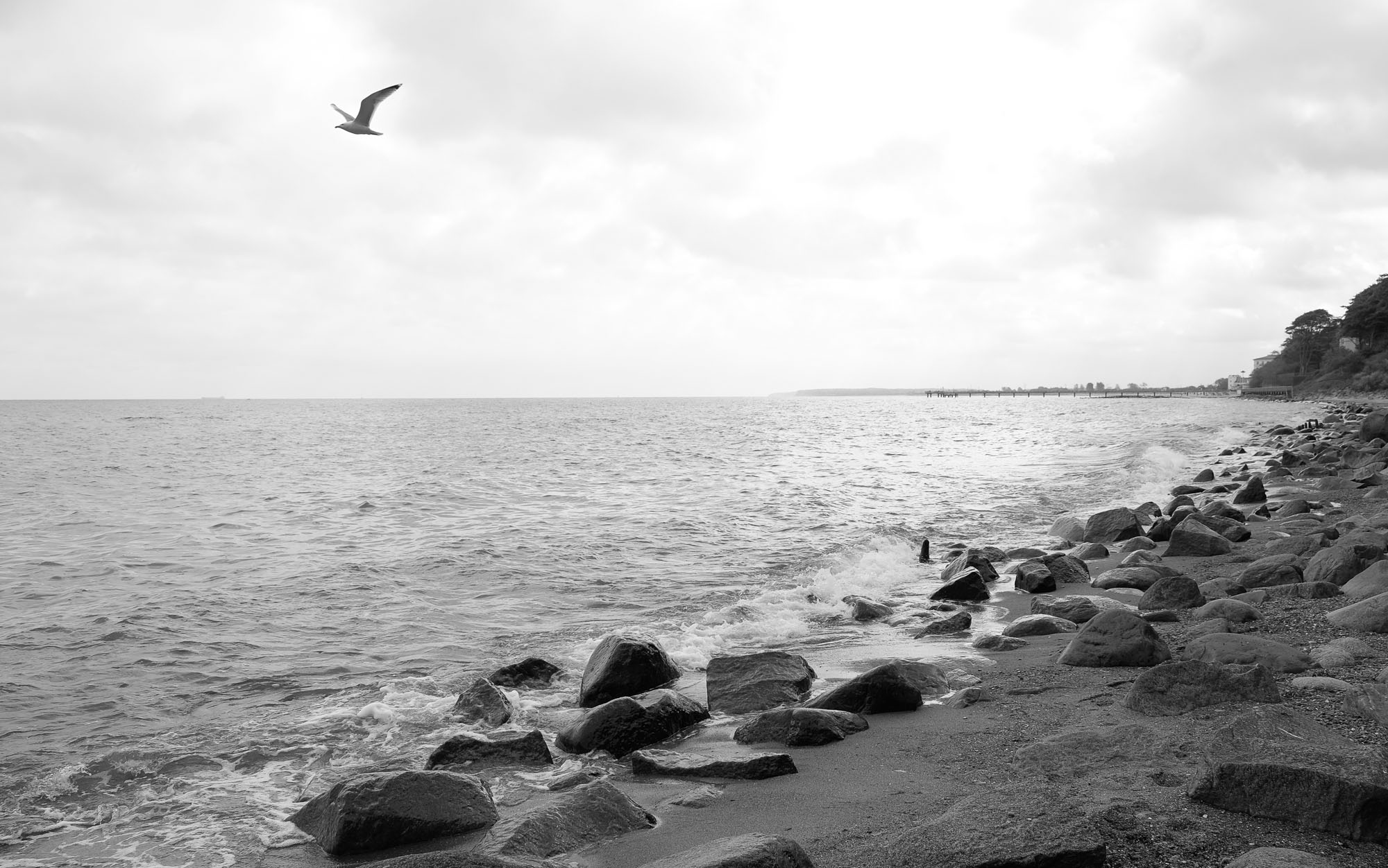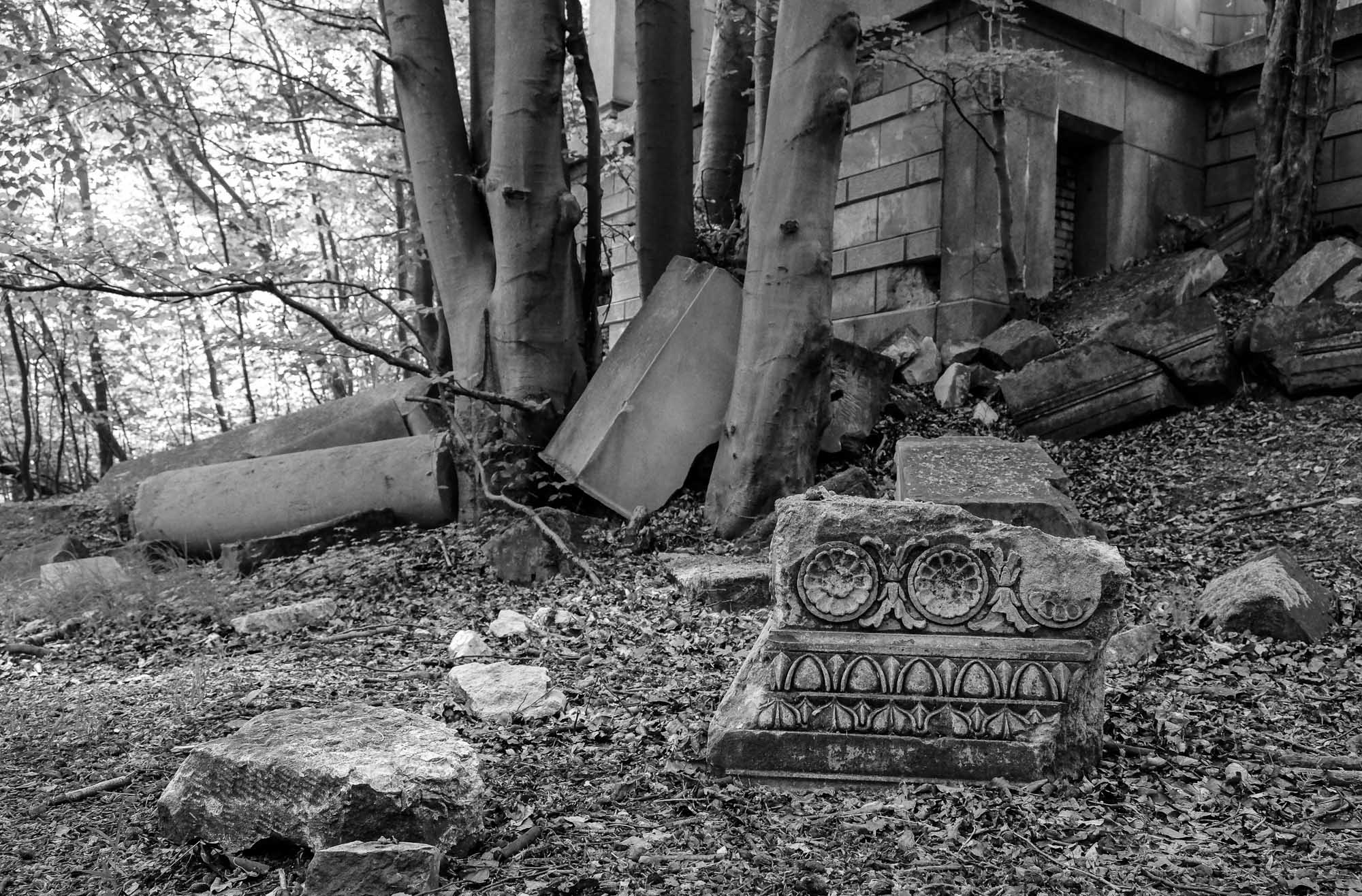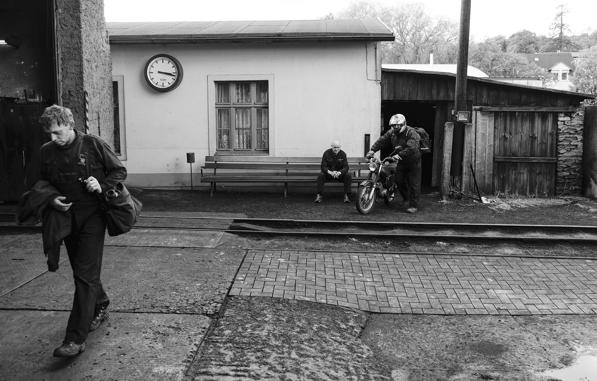Der Rasende Roland in der Putbuser Werkstatt, Angkor Dwasieden, Friedhof Vilmnitz und auf der Seebrücke von Binz in Schwarz/Weiß