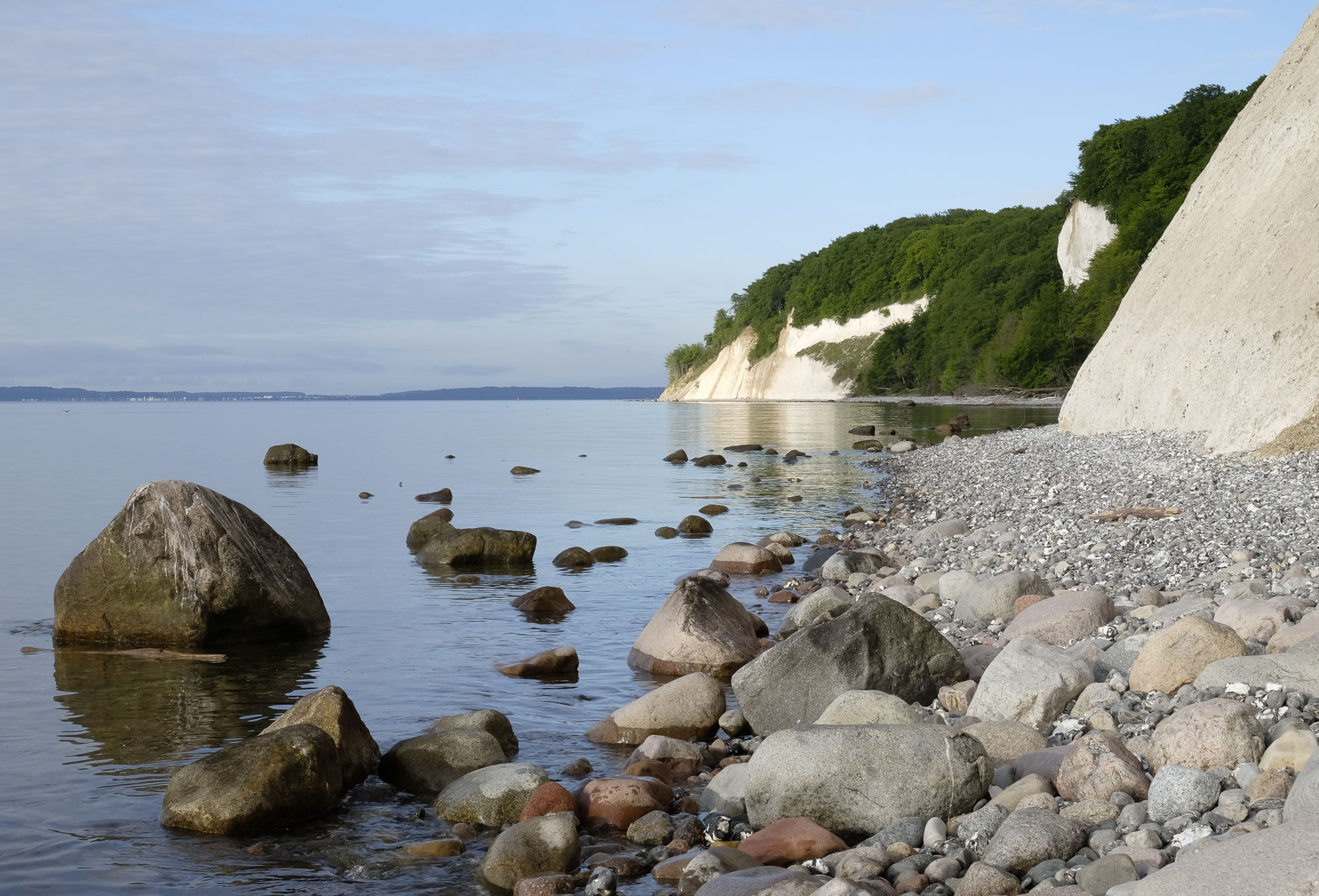 Morgens am Strand der Kreideküste nordöstlich von Sassnitz im Nationalpark Jasmund: