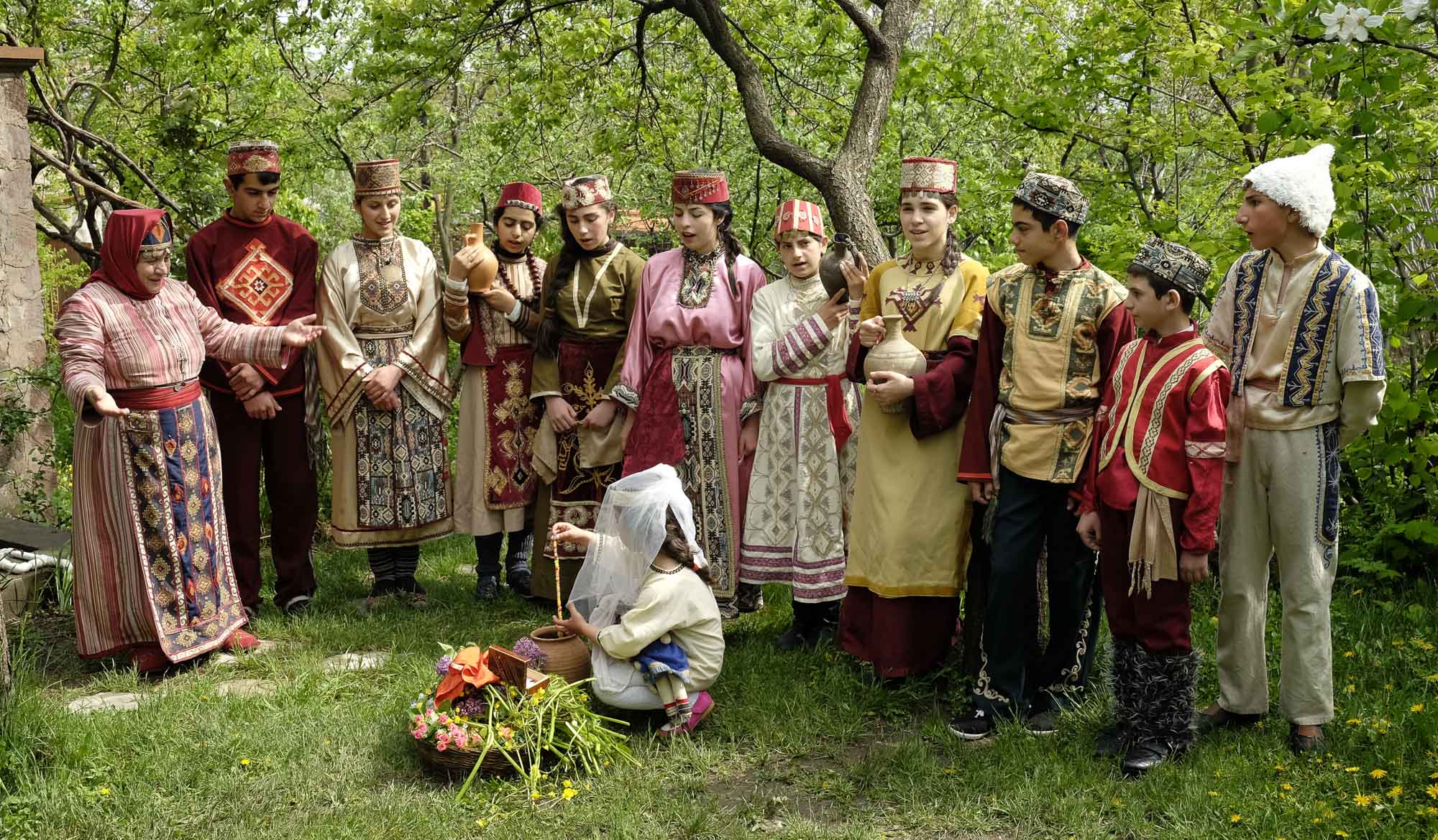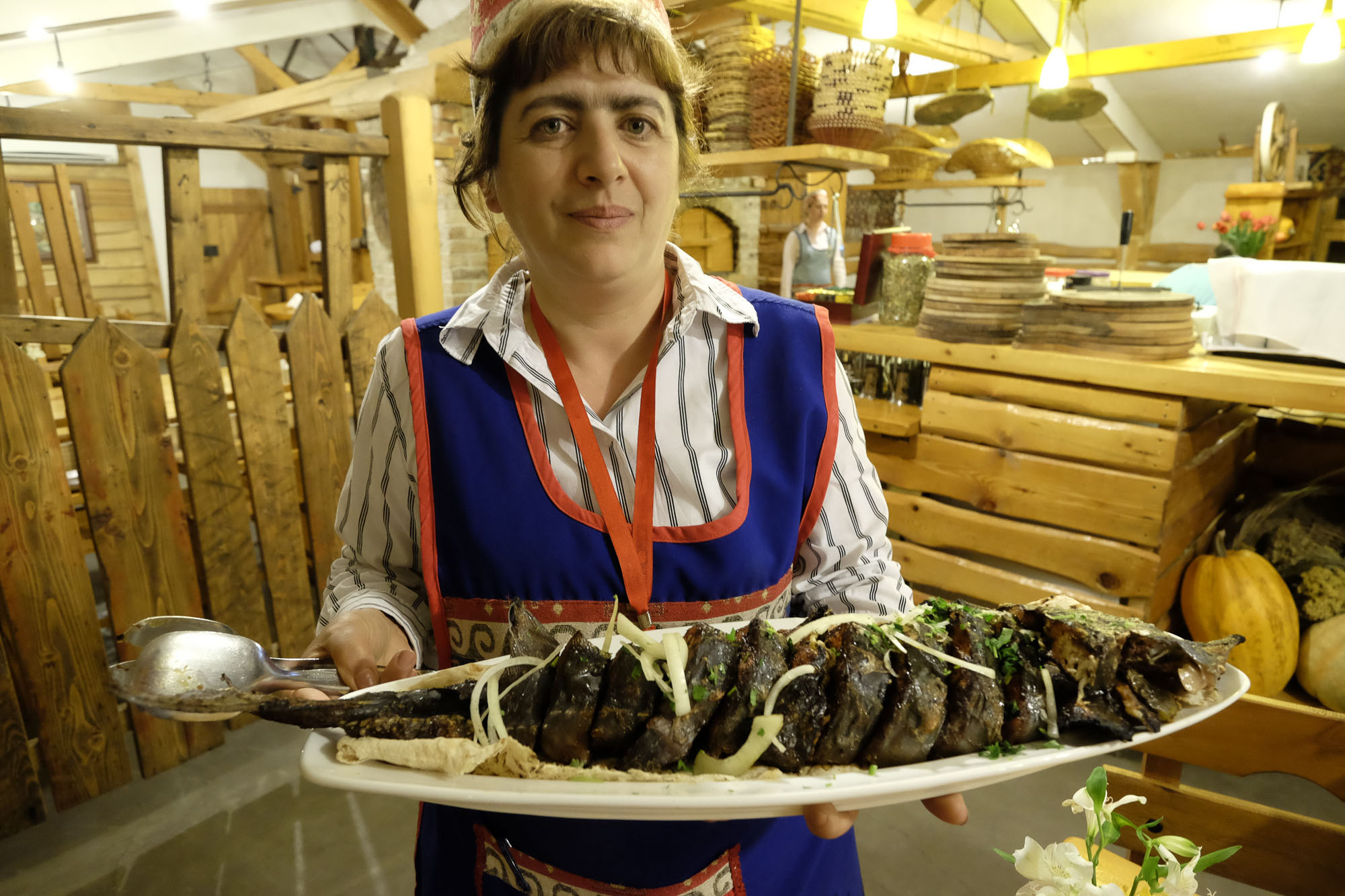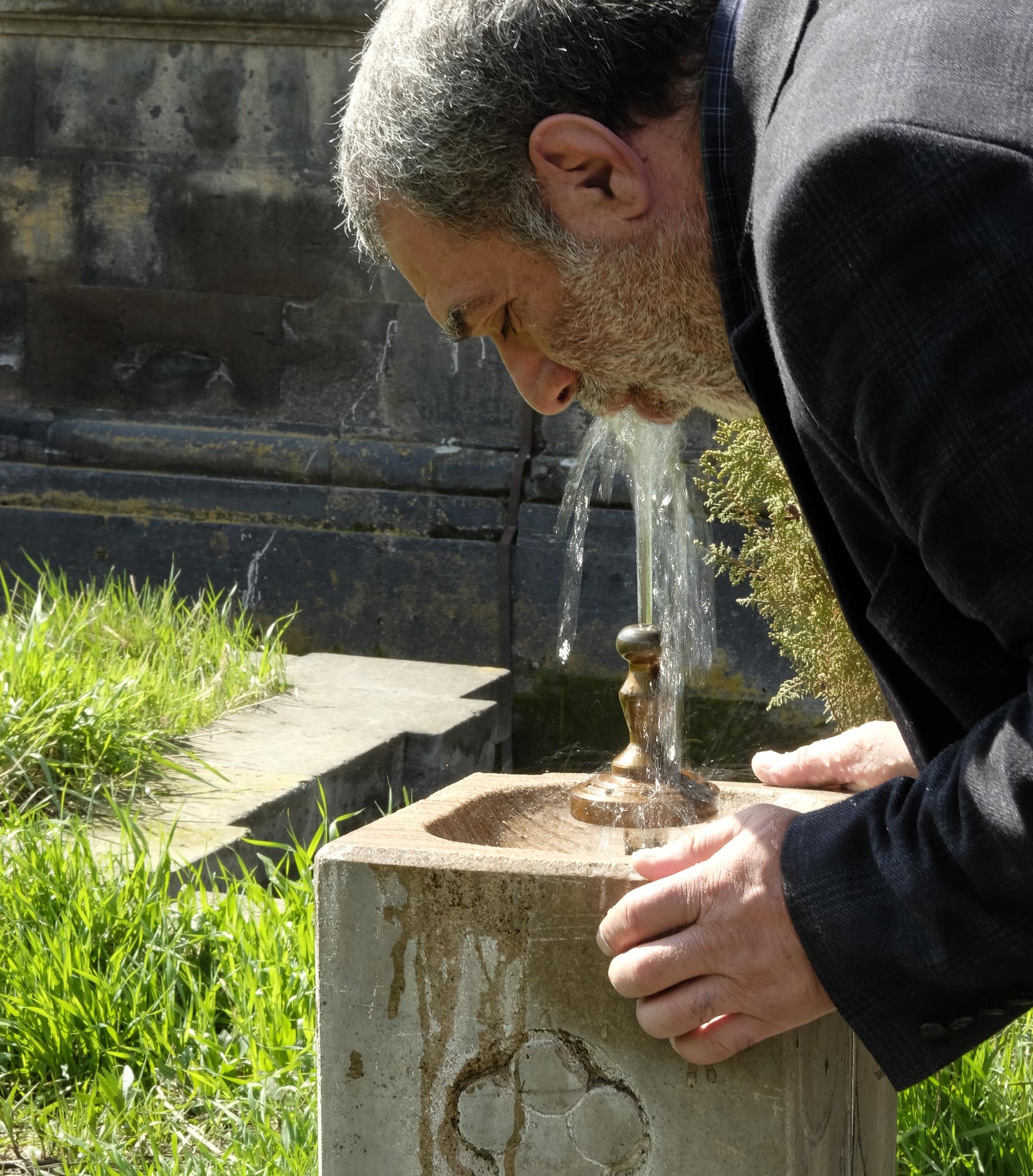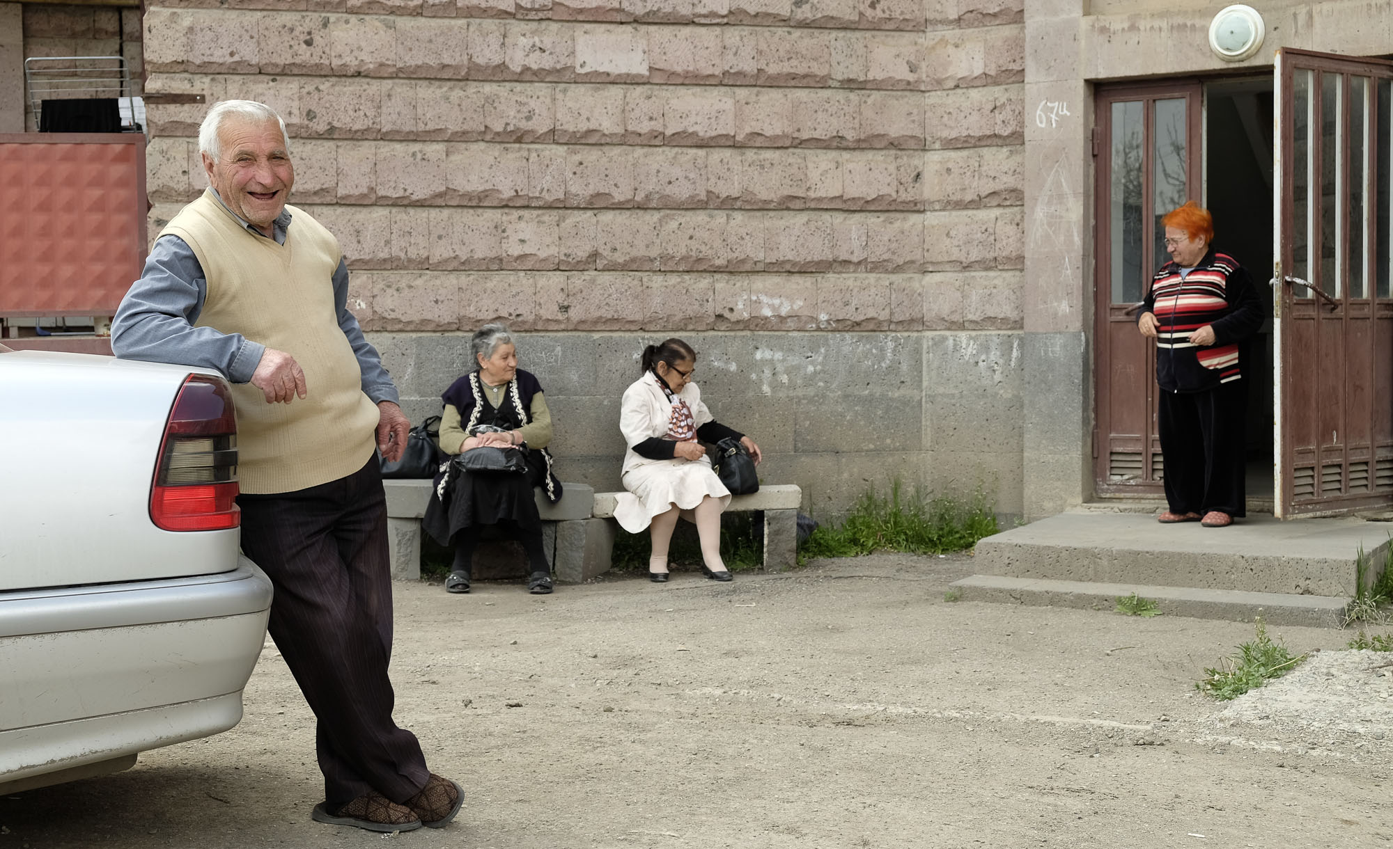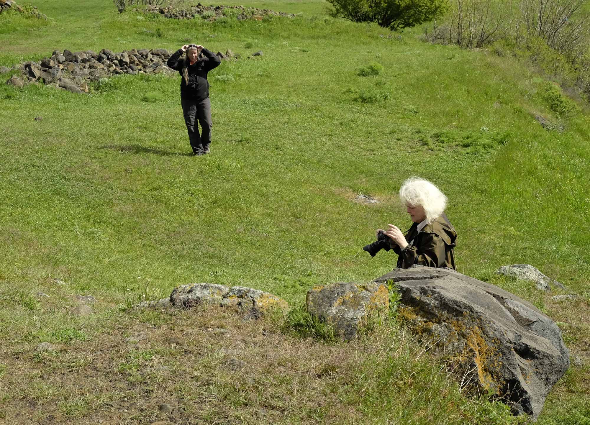Und gleich nach einer Folkloredarbietung für uns und für eine TV-Aufzeichnung für das Himmelfahrtsfest in Byurakan ging es nach lecker Essen (Stichwort Aprikosensuppe) weiter mit Bergwiesen voller Kräuter, den Geruch haben wir immer noch in der Nase, und riesigen Vorkommen der Iris elegantissima. Fotos mit Ararat im Hintergrund! Bei Einbruch der Dunkelheit waren wir dann glücklich in Gymuri, um hier gegen 21 Uhr zum Abendessen Sterlet und Forellen mit entsprechenden Beilagen serviert zu bekommen. Ein optisch, spiritueller und kulinarischer- gefühlter - 48 Stundentag fand dann gegen 23h sein Ende. Und heute ging es so weiter! Nach Durchstromern eines Teils, der trotz des großen Erdbebens von 1988, erhaltenen Altstadt Gyumris, besuchten wir den bekannten armenischen Bildhauer Albert Vardanyan in seiner Werkstatt. Nach über zwei Stunden konnten wir uns endlich losreißen, nicht ohne seine Familie kennengelernt zu haben und festzustellen, dass die armenische Reiseleiterin Maro, die wir auf unserer Kamtschatkatour 2015 am Bärensee kennengelernt hatten, eine Verwandte von ihm ist. Wie klein doch die Welt ist! Den Rest des Tages verbrachten wir in den immer noch bestehenden Erdbebennotunterkünften von 1988 bei den dortigen Bewohnern, die uns unbedingt ihre Wohn- und Lebensverhältnisse zeigen wollten und der obligatorischen Klosteranlage Marmashen, idyllischen in einem kleinen Tal gelegen und zum Abendessen trafen wir uns wieder mit Albert im exzellenten Fischrestaurant von gestern. Mal schauen was uns der morgige Tag, dann ist auch Jens dabei bringen wird, aber Hrach ist immer für eine Überraschung gut!