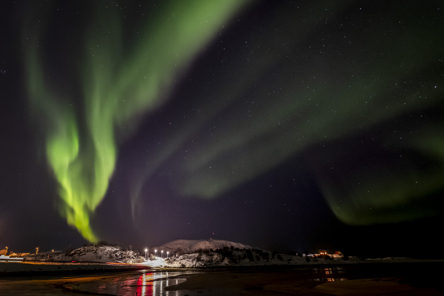 Neu war für mich, dass die Kamera das Licht früher als das Auge erkennt. An zwei Abenden zeigte es sich nur verhalten, aber am vorletzten Abend war Himmelskino in Grün angesagt. Staunen pur…Wir stehen draußen, vor dem Hotel oder am Strand, fotografieren oder genießen das, was nicht in Bildern einzufangen ist – und vergessen die Kälte.