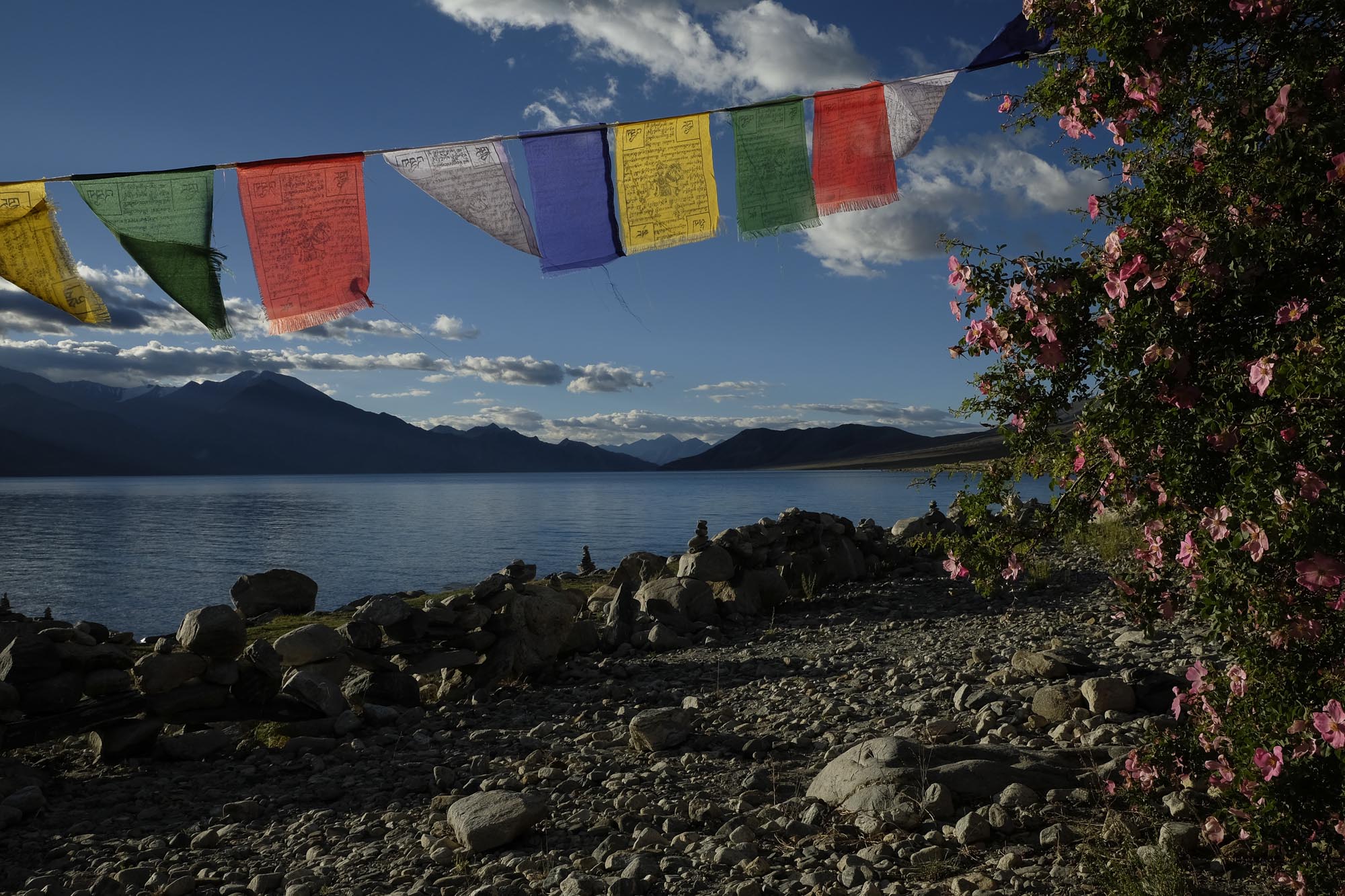 Ab Zelt gegen 5:15 Uhr, um das Erscheinen der Sonne über den Fünftausendern zelt- und seenah zu erleben. Das war mal sehr angenehm nicht erst ins Auto steigen zu müssen. Das kam dann nach dem Frühstück und wir versuchten nach der Lagunenfotografie noch etwas das Westufer zu erkunden, blieben allerdings zum Teil bei einem netten älteren Herren hängen, der uns erst einmal Tee an die Straße brachte. Und schon waren seit der Abfahrt dreieinhalb Stunden vergangen und wir hatten gerade mal 10% der Strecke hinter uns gebracht. Der Rest ist kurz erzählt: dank der zahlreichen Fotostopps erreichten wir unser Hotel in Leh nach knapp 12 Stunden Fahrt und Tausenden von Höhenmeter.